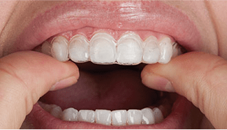 - Insert Your Retainers: Gently place your retainers on your teeth using your fingers. Do not bite your retainers in place. Once in place, push the front side of your retainer onto your teeth to smear the gel all over each tooth. Using your toothbrush, wipe away any excess gel that may have gotten on your gums.